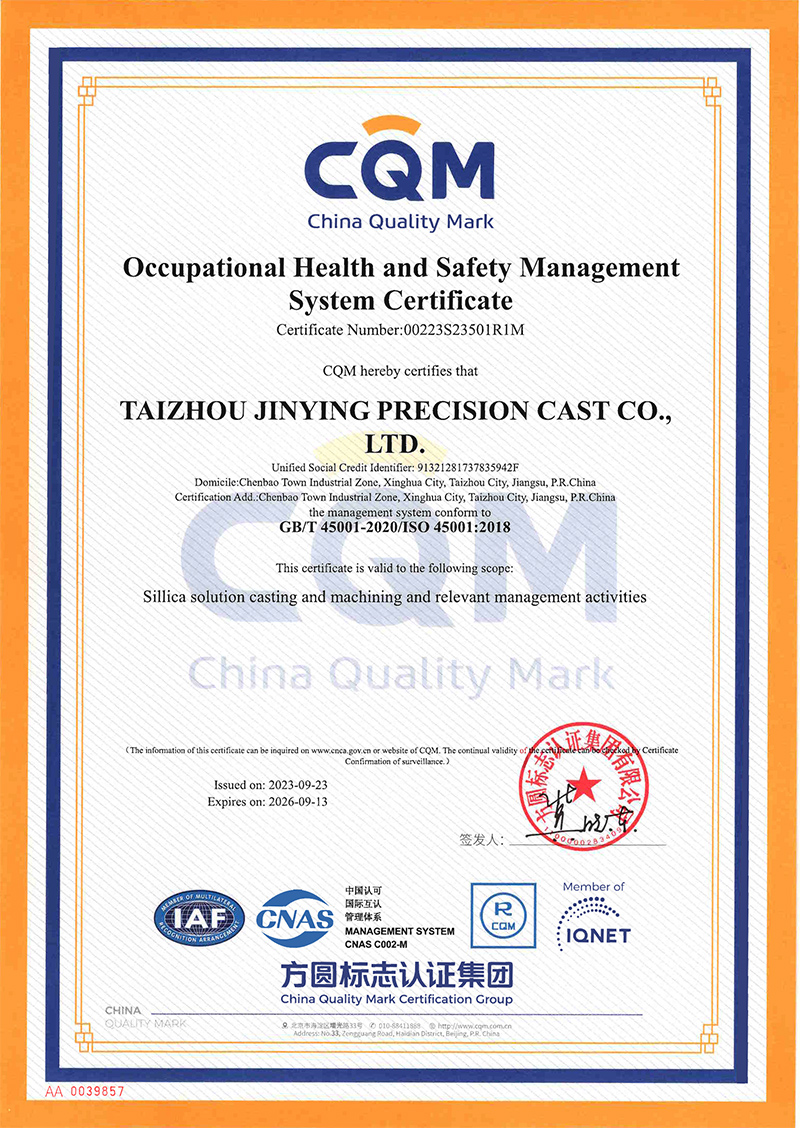 职业健康安全管理体系证书